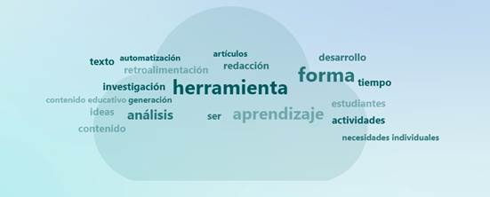 Además, se identificó que las personas docentes utilizan especialmente las herramientas de inteligencia artificial para la generación de texto como apoyo para la revisión de documentos, mejoramiento de objetivos y apoyo para el diseño de las presentaciones.