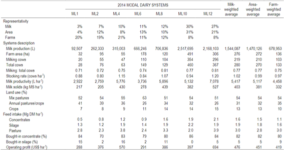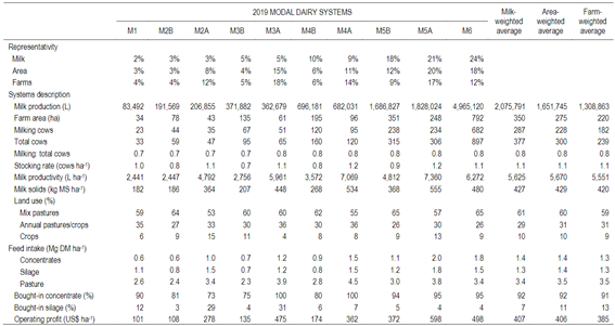 1The national average was calculated as the milk production-weighted of all modal dairy farm systems surveyed in 2014 and 2019.