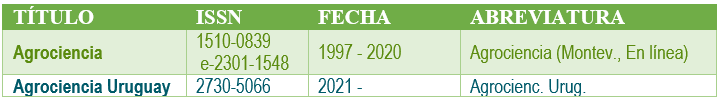 nuevo título Agrociencia Uruguay (ISSN 2730-5066), manteniendo