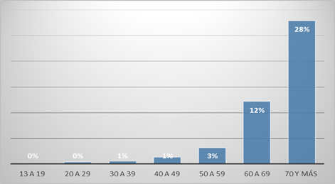 Como se observa en la Figura 3, la afirmación de la universalidad de las redes sociales puede aplicarse a los menores de 60 años. Entre 60 y 70 años, hay un 12 % de personas que no utiliza ninguna red social y entre los mayores de 70 este porcentaje alcanza al 28 %.