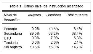 Tomando en cuenta el nivel de instrucción se observó que 9,5% de los individuos estudiaba en el momento de la recolección de datos y 81,1% no lo hacía. La distribución del último nivel de estudio alcanzado por este último grupo se presenta en la tabla 1.
