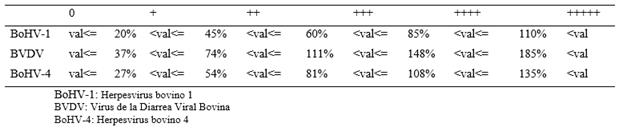 Tabla 3:  Frecuencia de los animales según serología a BoHV-1, BoHV-4 y BVD
