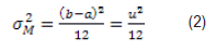 Siempre que realicemos una medición con un instrumento o técnica, estaremos suponiendo un cierto error de medición, la misma no será perfecta. La distribución uniforme (conocida también como distribución rectangular por el aspecto de su función de densidad) es un buen modelo para describir el error de medición (distribución de la probabilidad que tienen los distintos valores comprendidos entre dos unidades de la escala en una determinada medición, Figura 1)5)(6)(7. La distribución uniforme es útil para describir una variable aleatoria con probabilidad constante sobre el intervalo (a,b) en el que está definida, y se denota por U(a,b). Una peculiaridad importante de esta distribución es que la probabilidad de un suceso de-pende exclusivamente de la amplitud del intervalo considerado y no de su posición en el campo de variación de la variable.