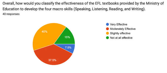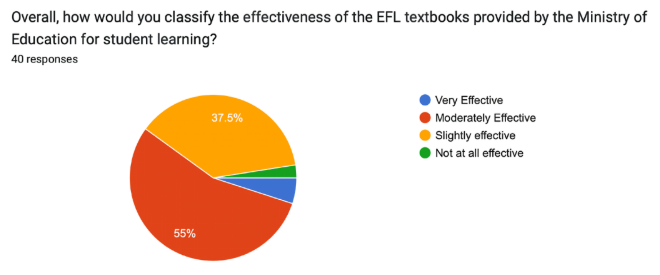 Figure 3: Overall effectiveness of the EFL textbooks provided by the Ministry of Education for student learning