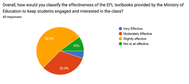 Figure 4: Overall effectiveness of the EFL textbooks provided by the Ministry of Education for student engagement