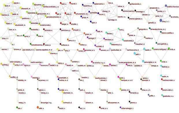 La colaboración científica es un fenómeno social complejo en la investigación, que ha sido objeto de estudio sistemático desde la década de 1960 (Glänzel y Schubert, 2004). El siguiente análisis de coautoría a nivel micro (autores) proporciona información valiosa sobre las características de la estructura científica en la colaboración a este nivel.