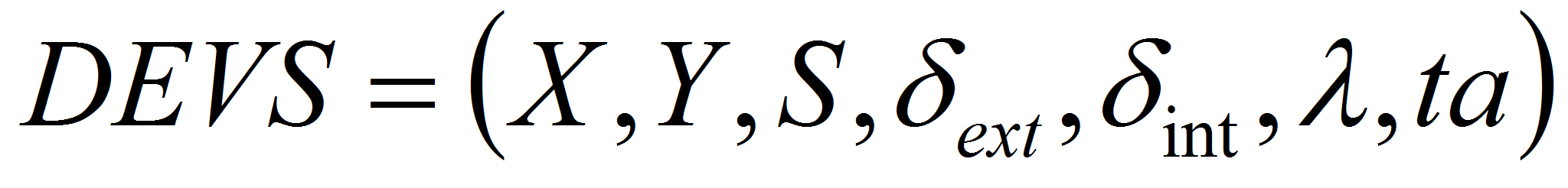 DEVS is a formalism for simulating discrete event system. It defines system behavior (input/output events and states, with the respective functions) and the system structure.
