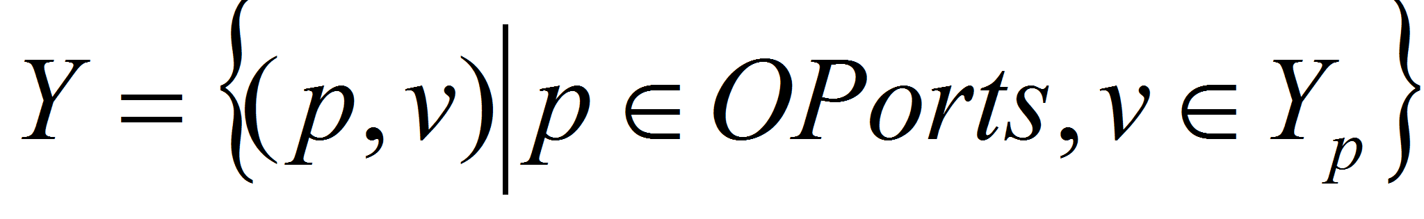 et of outputs. It is a set of pairs consisting of an output port and a value. OPorts is the set of possible output ports and Yp is the set of possible values for p output port