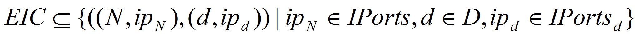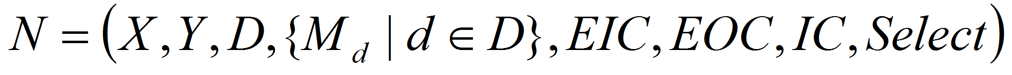 et of inputs. It is a set of pairs consisting of an input port and a value. IPorts is the set of possible input ports and Xp is the set of possible values for p input port.