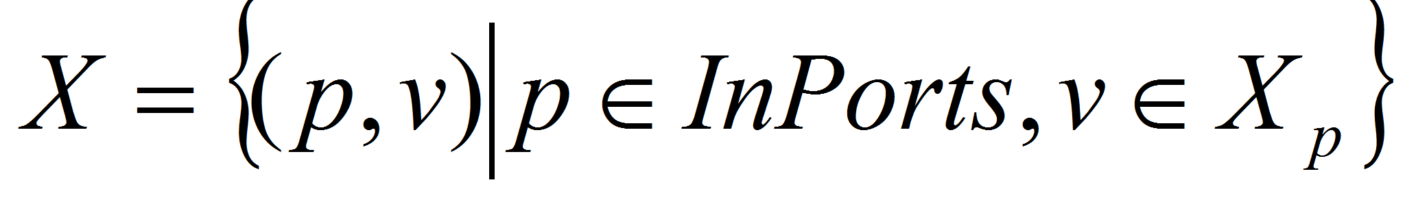 et of inputs. It is a set of pairs consisting of an input port and a value. InPorts is the set of possible input ports and Xp is the set of possible values for p input port.