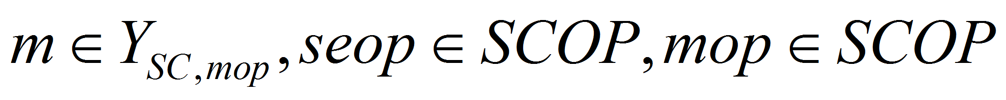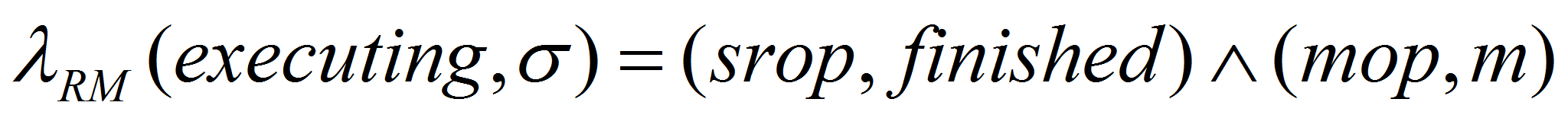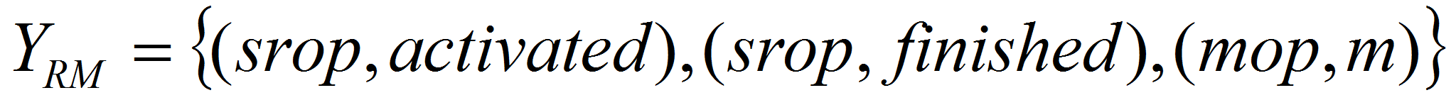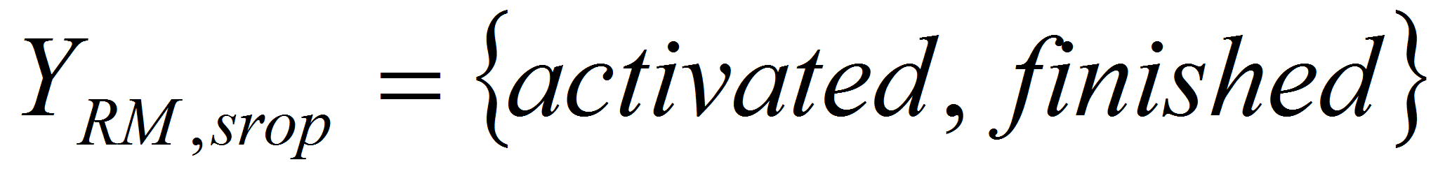 As part of the interface, CM has a set of input ports, which propagate the values to the internal components. It has a port called pcip that receives information about the previous components (SC instances), and it is connected to the input ports of the corresponding components (RM instances). The value (finished) indicates that the previous components have been finished their execution, activating the corresponding connector. The output ports propagate events generated by the components of this model to other simulation elements that represent software components. CM has two output ports: scop that emits events to the successor components, and mop that returns a measure. Two possible values can be emitted by the first port: activated (the execution of the connector has been started) and finished (the execution of the connector has been ended, no responsibility is active).