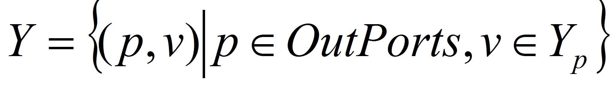 et of outputs. It is a set of pairs consisting of an output port and a value. OutPorts is the set of possible output ports and Yp is the set of possible values for p output port