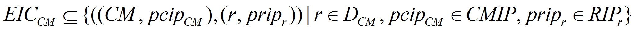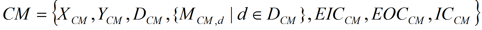 CM has a set of elements; each element is an instance of RM. These elements are connected using the ports, defining the internal couplings (ICCM), which obey the causal relationship between responsibilities. Furthermore, some of them are connected to the input ports of CM (EICCM), and others to the output ports of it (EOCCM).