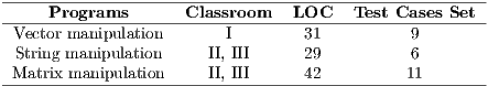 language by undergraduate students of computer courses. The master student who is leading this experiment defined the reference programs and the test case sets to be reused by the subjects. The experiment was performed by two groups of students (subjects) randomly selected from each classroom; two programs for vector and matrices manipulation
