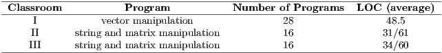 of the students completed the two programs on time. Due to this, the matrix implementation was not considered in the analysis. In classrooms II and III the two specifications were implemented by the students. Comparing with Table 1, the implementations of the students have, in average, more lines of code than the reference programs.