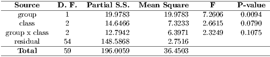 is the effect of the second factor of the analysis (class or experience) on the mean;