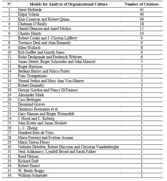 We should also note that many publications address the topic of OC, but not specific typological models for analysis of OC. In this systematic review, we identified 36 models. From these, seven models were selected according to certain criteria that mainly consider the origin of the source, giving priority to books/papers of the author of the model. The model most often applied in the selected papers was that of Kim Cameron and Robert Quinn (18) being 42% of the total of all models, while the model most often cited was that of Hofstede et al. (8) being 20%.