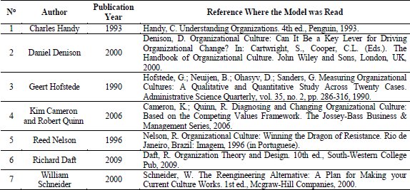 Importantly, the references for the study of OV were extracted directly from the authors of the selected models, thus avoiding the problem of opinion/comments of others. Organizational values were extracted from the definition of typological characteristics listed for each selected model, and the description of the quantitative method used to achieve this typology. Therefore, it was so important that the reading of the references of the models were from the author who developed it.