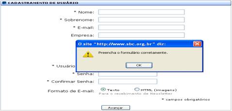 Figure 10 shows an example of usability problems related to instruction 1B WDP-RT (Any error message should inform the problems occurred and help the user to solve them, for example, indicating the procedure to be performed or an alternative solution. It may still be expressed with concepts of the problem domain and according to the user profile). In this picture, note that the system displays a generic error message to the user ("Fill out the form correctly"), without informing the problem occurred or help the user solve the problem.