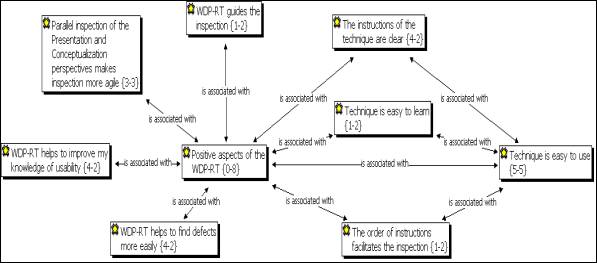 The category “Positive aspects of the WDP-RT” represents the codes related to the aid of the WDP-RT in the execution of the usability inspections. Eight codes were associated with this category (Figure 6) and are related to aspects of usefulness and ease of use of the WDP-RT.