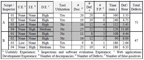 In the traditional software development scenario, it is possible to see substantial increases in quality as well as defects reduction due to the adoption of inspections and other review techniques (28). Also, the results presented in (2), (10), and (16), show that it also improves the quality of Web applications regarding usability. Inspections improve productivity since the defects are detected when they are easier and cheaper to fix. Thus, with these results, we also aim at encouraging the Web software industry in executing usability inspections more often.