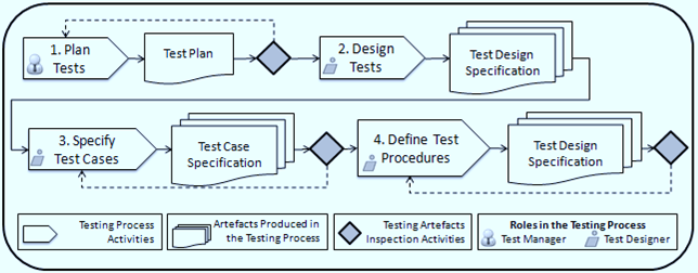 Figure 1 graphically represents an evolution of the sub-process of test planning described in (21) It indicates the artifacts to be inspected and at what moment (represented by a diamond) of the testing process this occurs.