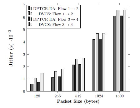 The empirical evaluation was also held in terms of jitter and end-to-end delay. The results for these metrics are displayed in Tables 12 and 13. In terms of jitter, DPTCR-DA is able to provide a decrease of
