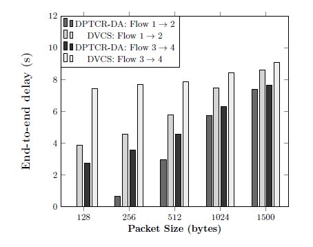 , respectively. Compared to the DVCS, the end-to-end delay obtained by the DPTCR-DA diminishes