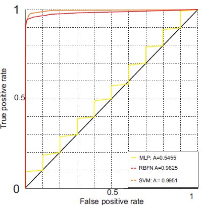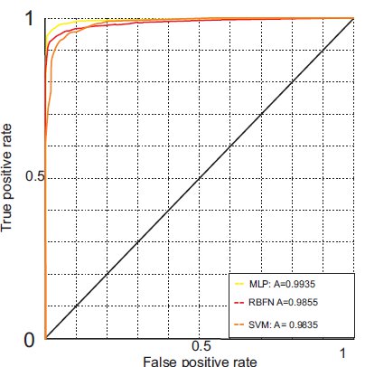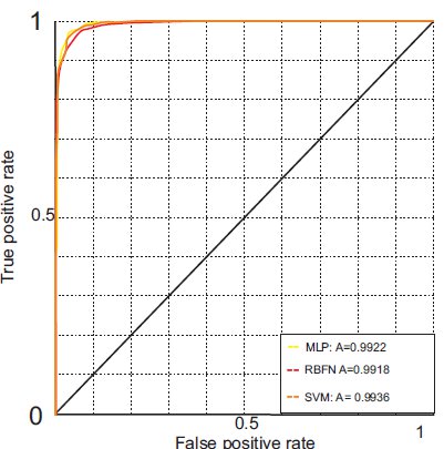 Figure 4 shows the ROC curves for all descriptors and the classifiers. The ROC curve of the SVM classifier and the LBP descriptor has the largest area: 0.9951. This is close to a perfect result (area = 1). This is explained by the results of Table 2.
