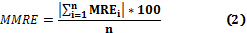 In which n is the number of projects, Mact is the real effort observed and Mest is the estimated effort.