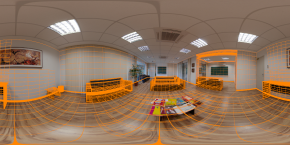 A second issue is the scale of the parametric space. The space represented in the equirectangular panorama is normalized around the camera point of view. In order to reconstruct the three-dimensional space, one needs to anchor one point in the represented space where the distance is known. For pictures not generated under controlled conditions, it can be hard to estimate the correct scale. This is not a problem as far as reconstruction of the environment goes. Nonetheless a high discrepancy in the scale of the scene should be considered for physic simulations, real world based lighting and artificial elements introduced with their real world scale in the scene.