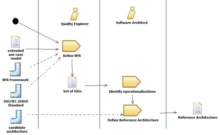 Recall that the basic premises set forth in this process are based on the NFR Framework, initially defined in [23] and the classic scenario-based or use case approach. These premises provide: