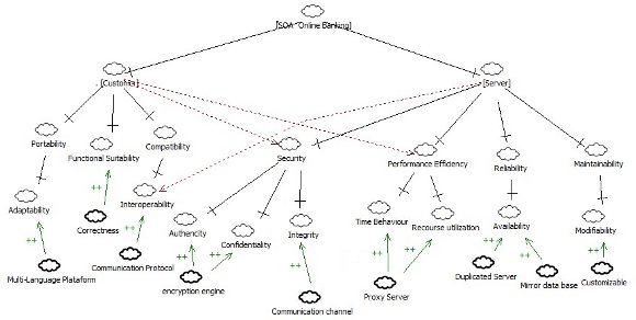 Figure 6: Softgoals Interdependence Graphics (SIG) for SOA (Service Oriented Architecture) [19]