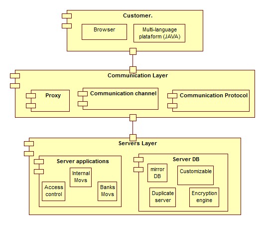 For the online banking domain several architectural solutions are available. In our case, on the basis of previous studies [28] [19], we prefer to use the Service Oriented Architecture (SOA), which follows a layered style, with a client/server communication layer.