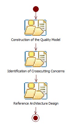 Continuing with the main disciplines of UPDA, at this point part of the extended use case model obtained in the previous stage and the graphics of interdependence of objectives (SIG) are generated and each softgoal corresponding to a NFR is refined into an operationalization, to construct the reference architecture of the domain.