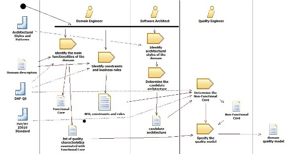 The establishment of the quality model for the domain family of products helps to define the overall NFR, valid for the entire domain, as well as some quality requirements for common functionalities and represent a quality view of the domain knowledge [22]. In this case, the domain quality model is expressed using the process defined by Losavio and others [20], DAP-QS, where it is developed for a family of products. The steps of this process are presented in what follows: