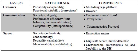 Candidate Architecture is determined on the basis of the main features of the domain as well as its constraints and business rules. The quality characteristics originated from the architectural styles considered for the domain are identified. In our case, the candidate architecture can be represented graphically as shown in Fig. 10, revealing the layered design with service selection and communication (Internet and firewall) layers.