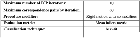 FPS). In fact, the ICP is a slow iterative technique and, unless it is somewhat improved, it is not recommended to real-time applications [12]. By imposing performance constraints as input parameters to the ICP, the proposed implementation obtained an improvement of