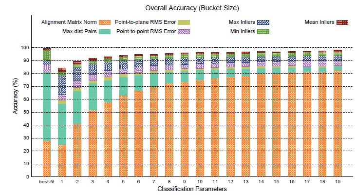 B-fit algorithm was verified by classifying all the out of the bucket database images (test data). Figure 8 presents the average accuracy for all the performed experiments. The first bar on the