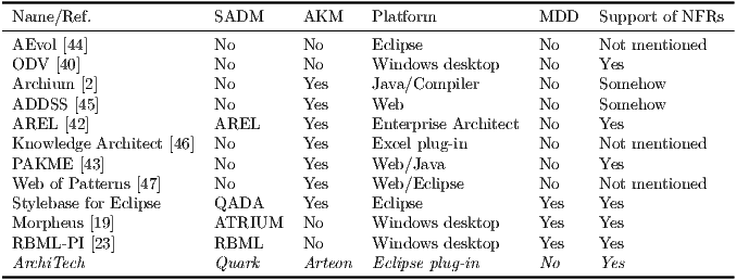 - M. Shahin et al [39]: this work compares tools to manage architectural design decision and the ways used to model these decisions.