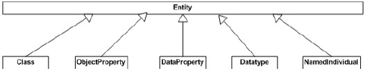 OWL 2 ontologies provide classes, properties, individuals, and data values, and are stored as Semantic Web documents. An OWL 2 ontology is a formal description of a domain of interest rooted in three syntactic categories that are interpreted under a standardized semantics, which allows useful inferences to be drawn. Figure 3 , Figure 4 and Figure 5 depict the structural specification of such categories: