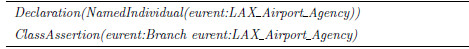 Table 10: SBVR specification of “LAX Airport Agency” individual concept