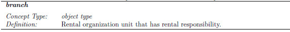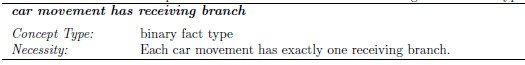 As an example, the mapping shown in Table 16 depicts a disjunction expression stating that a rental in which the car is returned to a branch different from the pick up branch can crosses local area or international boundaries.