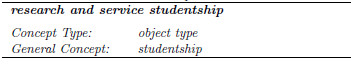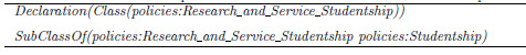 Table 26: OWL 2 specification of “research and service studentship” concept