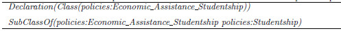 Table 28: OWL 2 specification of “economic assistance studentship” concept