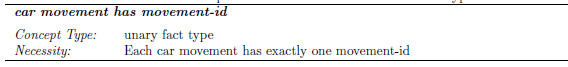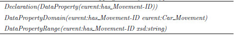 In the case study, the has Movement-ID characteristic is used as the identifier of the individuals be- longing to the Car Movement object type. The corresponding translation is: