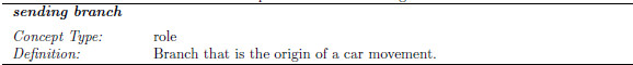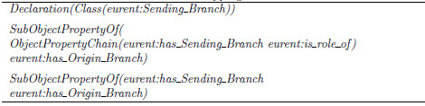 In the case study, Branch object type adopts two roles by assuming the function of sending or receiving branch of a car movement. Expressions below (Table 8 and Table 9 ) show the mapping of the sending role - the other one is made in the same way -.