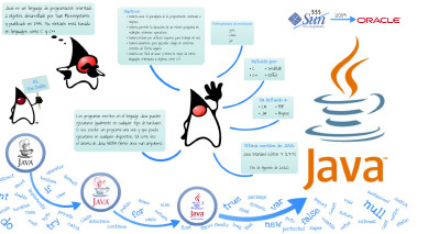 Infographics are graphic visual representations of information, data and knowledge that includes text and images, narratives, descriptions, maps, etc. This activity aims to generate computer graphics containing answers to: “What is Java?,” “Where?”, “Who developed it?”, “When?”. As a homework, each student searchs the required information and develops the infographic. In (Fig. 2) there is a sample infographic developed by one student. Students must bring to class the picture. In class, all infographics are discussed and the main topics are referred.