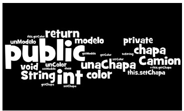 Students are asked to create at home a "word cloud" from Java code using the Wordle tool [40]. The class "Truck" is the first complete design example of a Java class that is presented in the course. The model consists of a truck, with attributes color and plate number. This includes instance variables and methods of access and modification. Each student creates his or her own "cloud" and in the next class all must provide an explanation of the words that appear more prominently (Fig. 3).