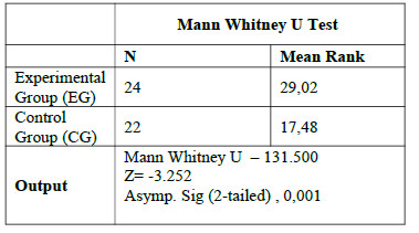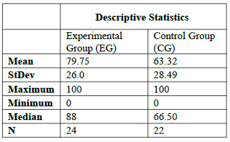 In terms of statistical significance (measured by alpha (α)) a high level of significance (α < 0.01) was found. As the value of p-value shown in Table 7 is 0,001 (less than 0.01) we reject H0 and accept H1. In this context, there is statistical evidence to conclude that the performance of the experimental group is significantly different. Considering the detailed final results of the students and the MWUT, we could infer that the proposed pedagogical design produce significantly better final results.